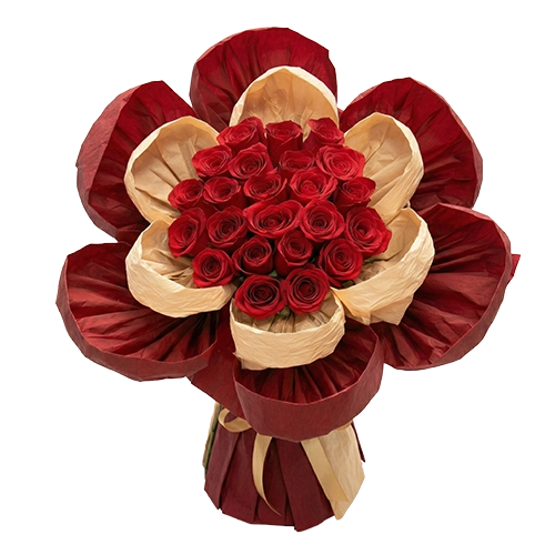 Experience an artistic masterpiece with this unique giant concentric circular bouquet design, offering a captivating Mandala-like visual effect. At its dense center lies a tight cluster of vibrant and lively red roses. Multi-layered, delicate beige/cream crinkled petals form an inner ring, adding contrasting layers. The massive outer ring is composed of countless deep crimson/burgundy crinkled petals, creating dramatic scale and incredibly rich texture. The entire arrangement bursts with color and texture, presented against a pure white background that flawlessly highlights its complex structure without distraction. Exclusive Giant Concentric Mandala Design: Highly creative and visually impactful. Dense Vibrant Red Rose Core: A captivating focal point symbolizing intense emotion. Layered Crinkled Inner (Beige) and Outer (Deep Red) Rings: Rich texture and depth. Dramatic Scale and Striking Color Contrast: Truly unforgettable. Alami karya seni agung dengan jambangan bunga reka bentuk bulatan sepusat raksasa yang unik ini, menawarkan kesan visual seperti Mandala yang memukau. Di tengahnya yang padat terdapat kluster ros merah bertenaga dan hidup. Berbilang lapisan kelopak berkerut berwarna bej/krim yang halus membentuk bulatan dalam, menambah lapisan kontras. Bulatan luar yang besar dan luas terdiri daripada kelopak berkerut berwarna crimson/burgundy yang tidak terkira banyaknya, mencipta skala dramatik dan tekstur yang sangat kaya. Keseluruhan gubahan dipenuhi dengan warna dan tekstur yang kaya, dipersembahkan pada latar belakang putih bersih yang menonjolkan struktur kompleksnya dengan sempurna tanpa sebarang gangguan. Reka Bentuk Bulatan Sepusat Mandala Raksasa Eksklusif: Sangat kreatif dan memberi impak visual. Teras Kluster Ros Merah Bertenaga Padat: Titik fokus memukau melambangkan emosi yang mendalam. Bulatan Kelopak Berkerut Dalam (Bej) dan Luar (Merah Tua) Berbilang Lapisan: Tekstur kaya dan mendalam. Skala Dramatik dan Kontras Warna Menarik: Benar-benar tidak dapat dilupakan. Natural Variations: Flowers are natural products, meaning each individual bloom is unique in its size, shape, color, and stage of opening. Therefore, we cannot guarantee that the physical product you receive will be a 100% exact replica of the product images shown on our website. Product photos are for illustration and style reference only. Substitution Policy: Due to seasonal variations, climate conditions, and market availability, certain secondary flowers, foliage, or packaging materials may occasionally be out of stock. In such instances, our florists will substitute them with similar materials of equal or greater value without prior notice. We ensure that the overall style, color scheme, and aesthetic of the arrangement remain uncompromised. Actual Product Prevails: All our floral arrangements are handcrafted by our florists. The final delivered product shall prevail. By placing an order, you acknowledge and agree to these terms. Polisi Penggantian: Disebabkan oleh perubahan musim, keadaan cuaca, dan ketersediaan pasaran, sesetengah bunga sampingan, daun, atau bahan pembungkusan mungkin kehabisan stok dari semasa ke semasa. Dalam keadaan ini, pereka bunga kami akan menggantikannya dengan bahan yang serupa dengan nilai yang sama atau lebih tinggi tanpa notis awal. Kami akan memastikan gaya keseluruhan, tema warna, dan estetika gubahan kekal terpelihara sepenuhnya. Produk Sebenar Sebagai Rujukan: Semua gubahan bunga kami adalah buatan tangan sepenuhnya oleh pereka bunga kami. Produk akhir yang diterima adalah muktamad. Dengan membuat pesanan, anda memahami dan bersetuju dengan terma-terma ini.